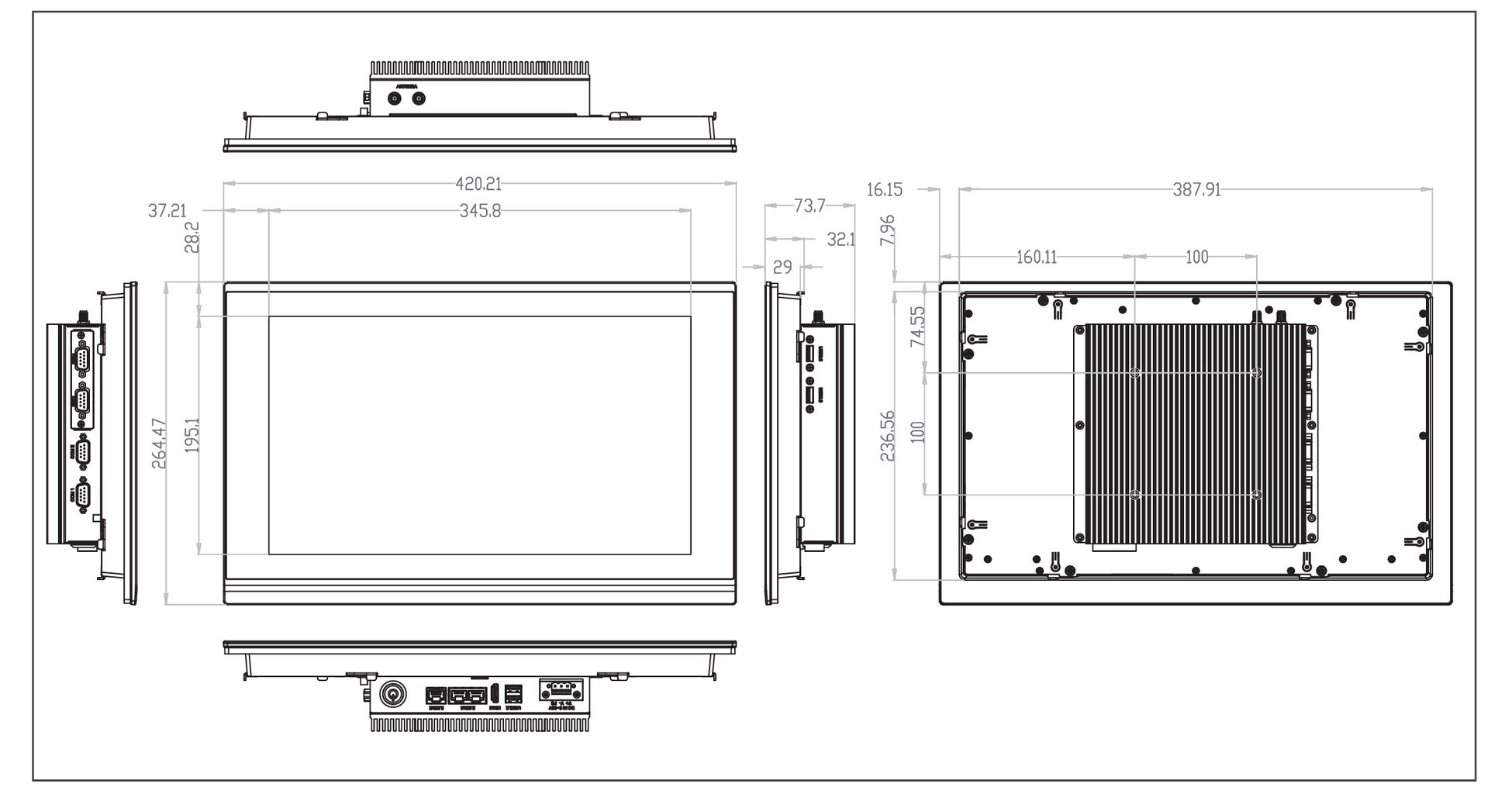 フロントベゼルIP65準拠 パネルマウント対応 ファンレスタッチパネルPC