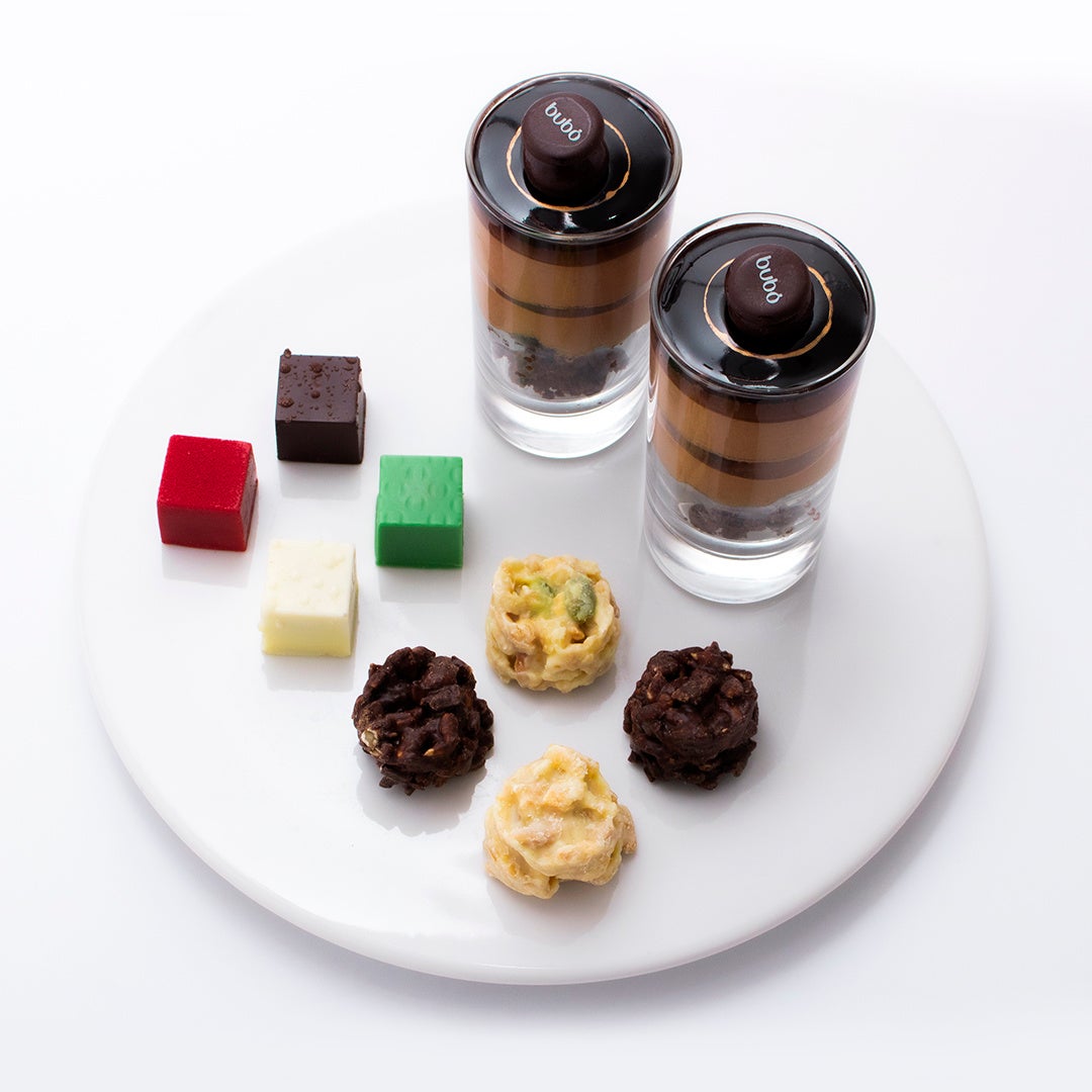 コロンとした愛らしい見た目と、素材の味わいを楽しむ一口サイズのケーキ。すべてをチョコレートのみで仕上げた濃厚なチョコレートケーキ「ブボチョコデラックス」、甘酸っぱく爽やかなケーキ「シトロン」、イチゴとカスタードクリームのハーモニーを味わうタルト「フルーツタルト」をご用意しました。