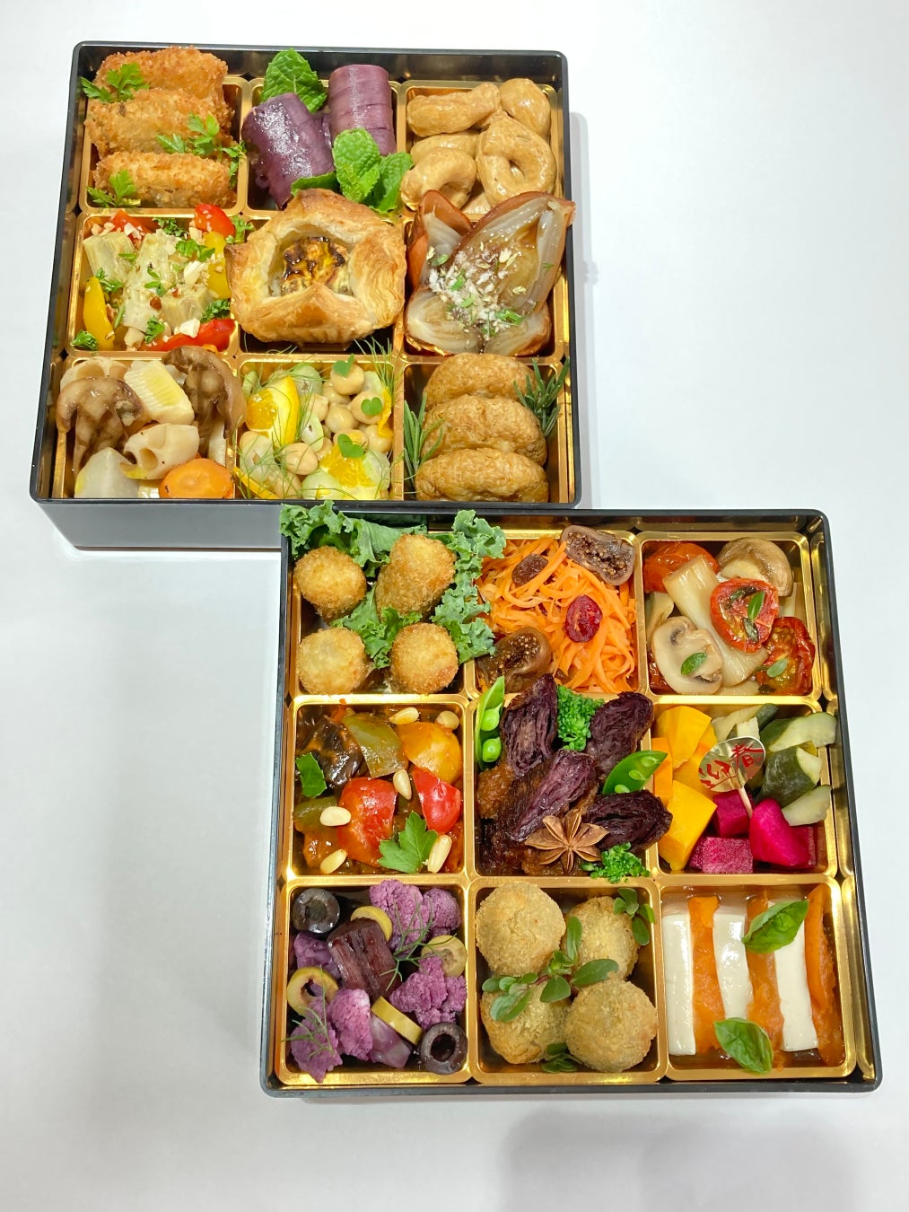 元大使公邸料理人の遠藤雅文シェフ監修!和・洋どちらも楽しめるV-gardenのヴィーガンおせち2段重!