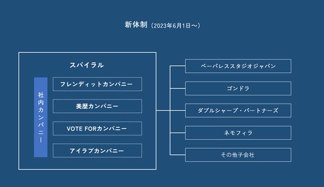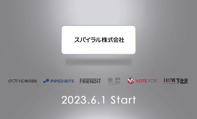 株式会社パイプドビッツ(東京都港区、代表取締役社長CEO 林哲也)は、今後の飛躍的な成長を企図して、2023年6月1日にパイプドHD株式会社、株式会社パイプドビッツ、株式会社フレンディット、株式会社美歴、株式会社VOTE FOR、株式会社アイラブ、スパイラル株式会社(※1)の7社を合併する組織再編を行い、社名を「スパイラル株式会社」に変更いたします。