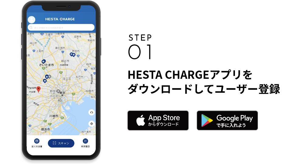 STEP1:「HESTA CHARGE」専用アプリをダウンロードしユーザー登録