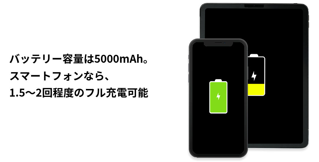 スマートフォンなら、1.5~2回程度のフル充電可能