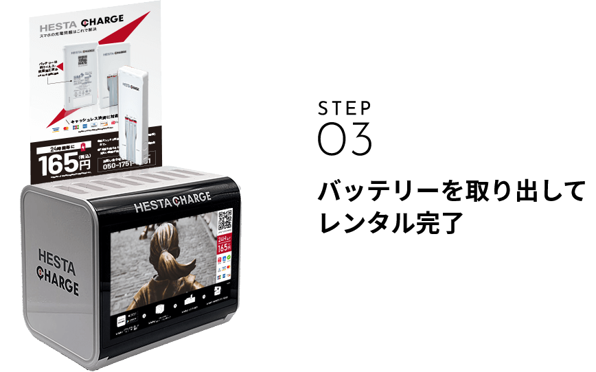 STEP3:モバイルバッテリーをスロットから取り出しレンタル完了