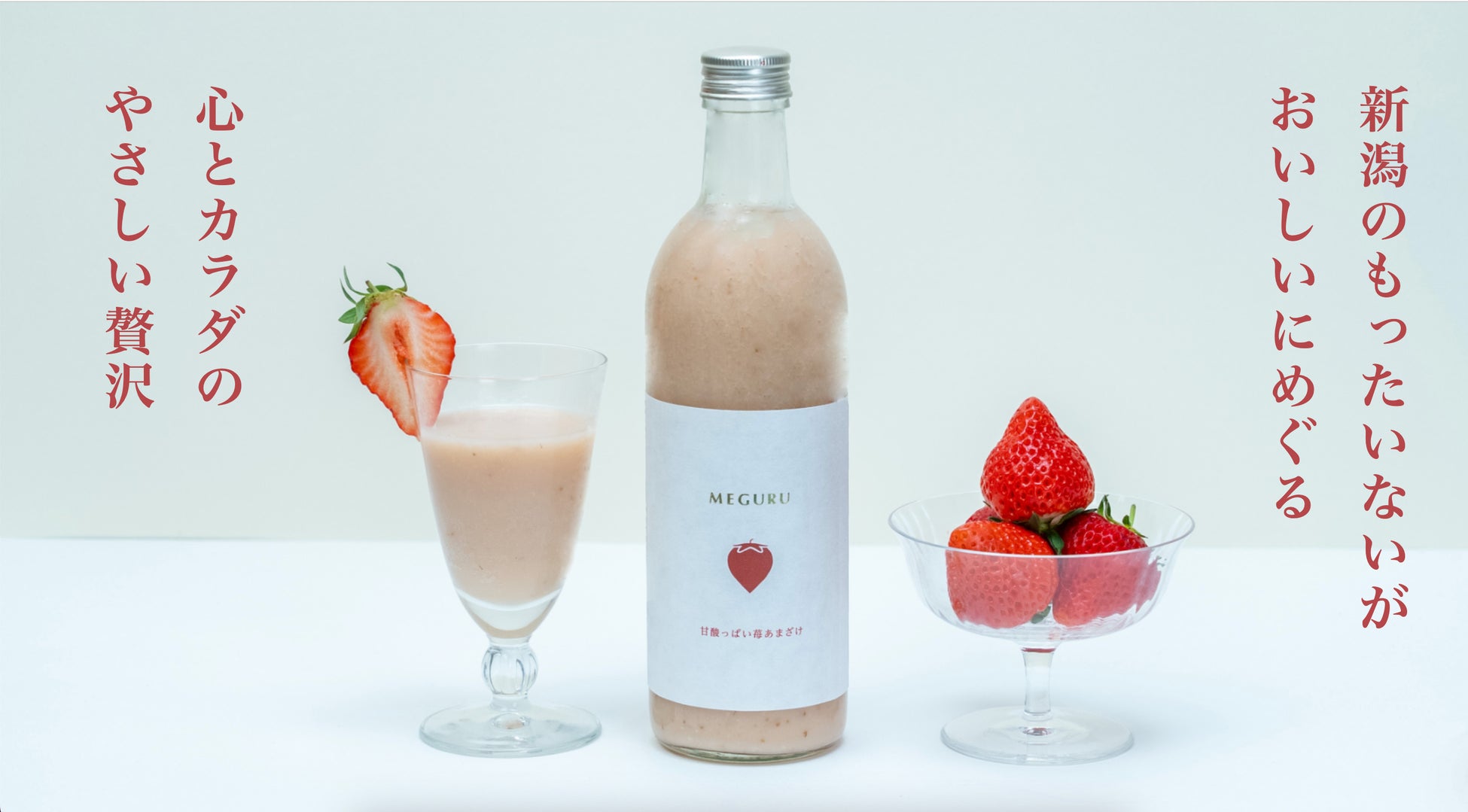 新潟県産“越後姫”を使用したノンアルコール甘酒「MEGURU 甘酸っぱい苺あまざけ」発売