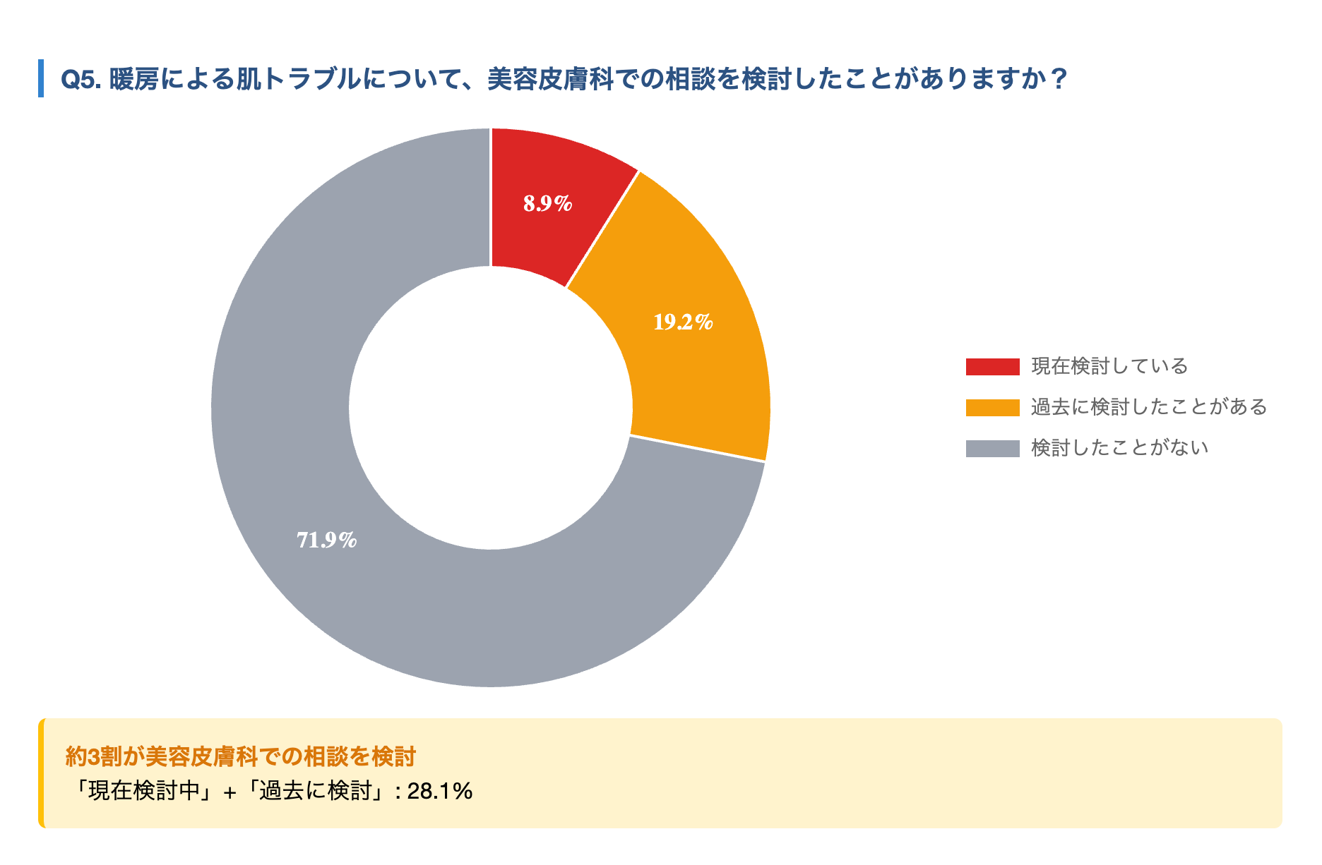暖房による肌トラブルについて、美容皮膚科での相談を検討したことがあるか調査しました。