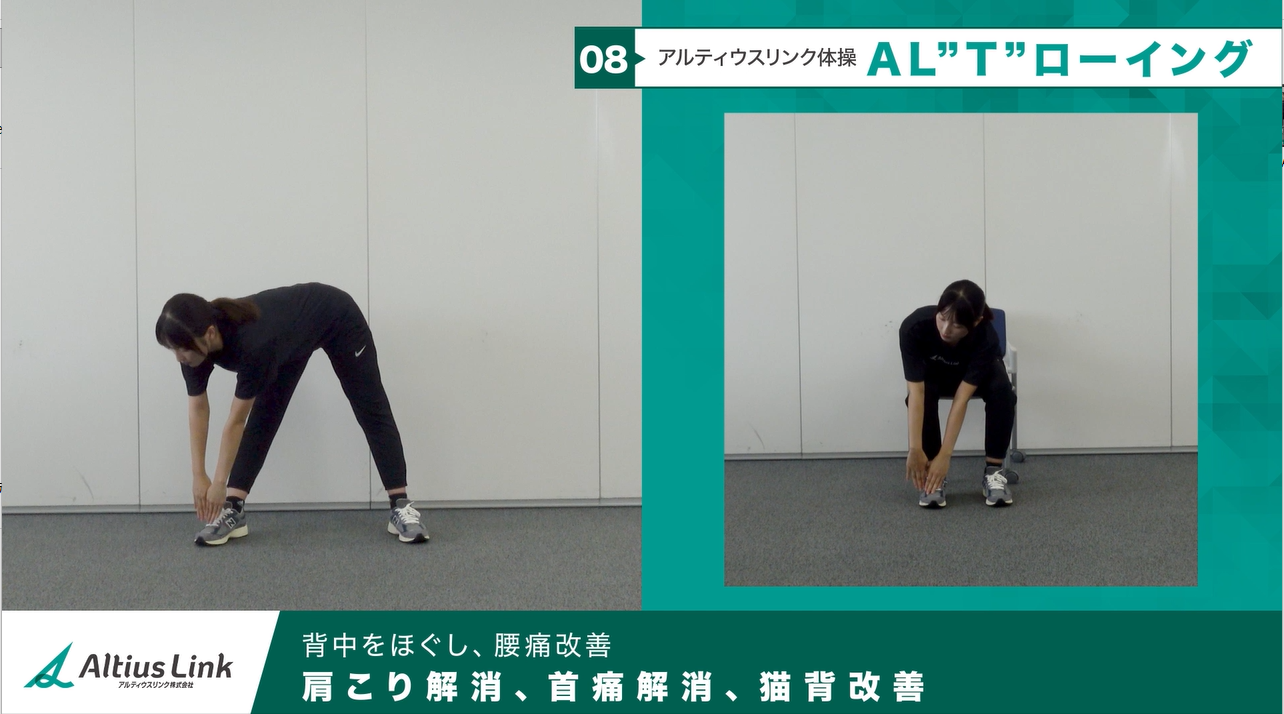 ・ALT"ローイング: 背中をほぐし、肩こり解消や首周りの痛みを緩和します。