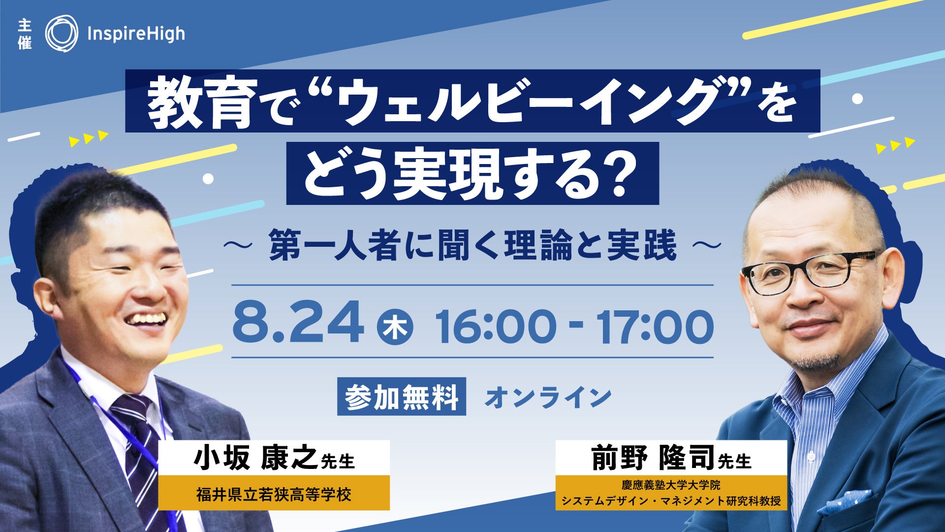 日本における幸福学の第一人者である、慶應義塾大学大学院システムデザイン・マネジメント研究科教授の前野隆司先生と、創立当初から教育理念に「異質のものに対する理解と寛容」を掲げ、ウェルビーイングの実現に向けた教育活動を実践している、福井県立若狭高等学校の小坂康之先生に、理論と実践についてお話いただきますので、ぜひご参加ください。