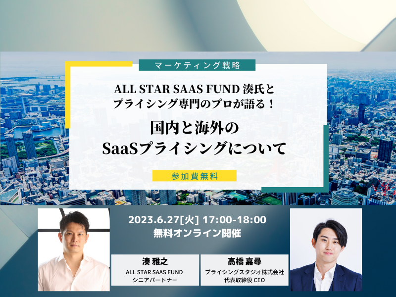 プライシングスタジオ株式会社 6月27日(火) 数多くのSaaS企業のVC投資を手掛けた湊雅之氏と日本のSaaSプライシングの展望を語る対談ウェビナーが開催決定!