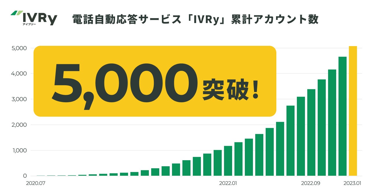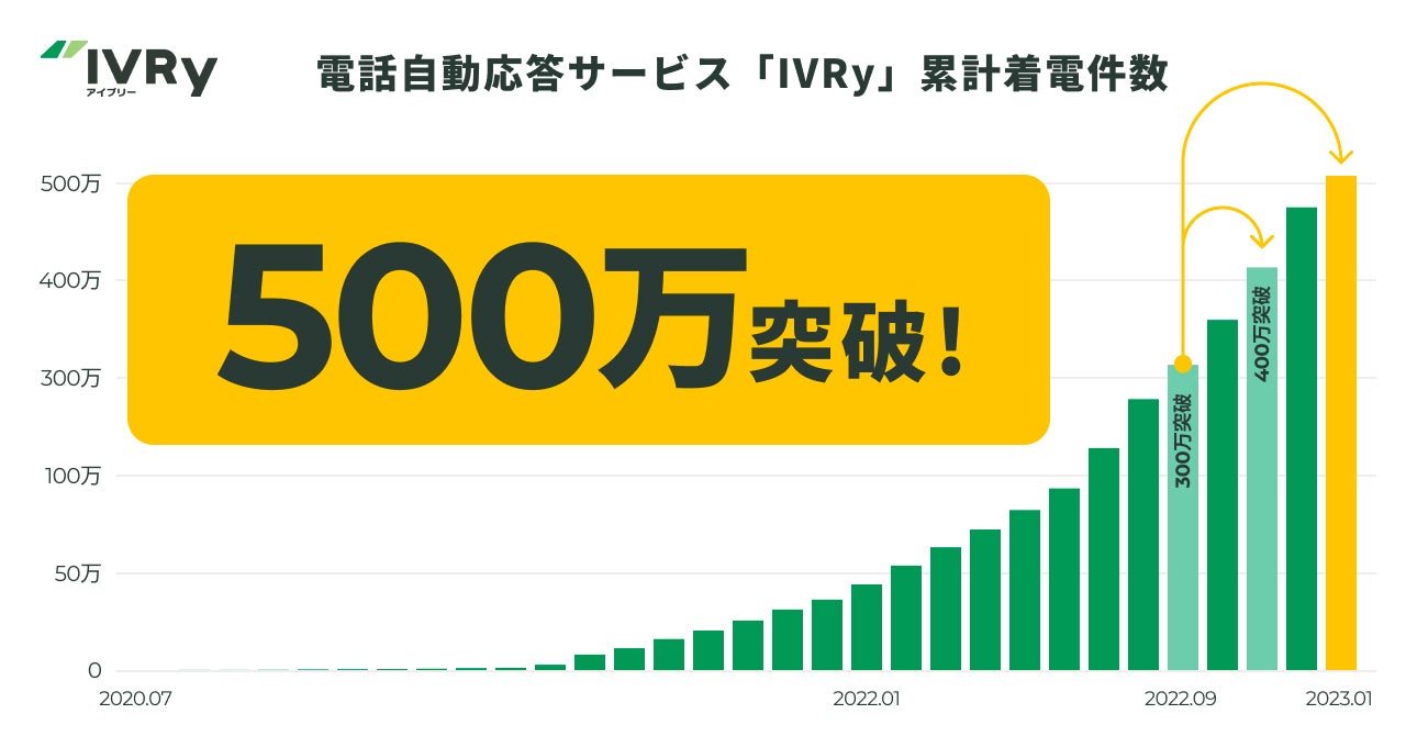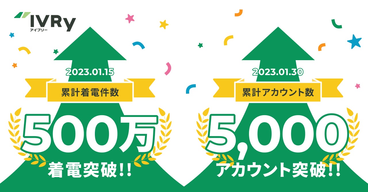 電話自動応答サービス「IVRy」、累計着電件数500万件、累計登録アカウント数5000件を突破