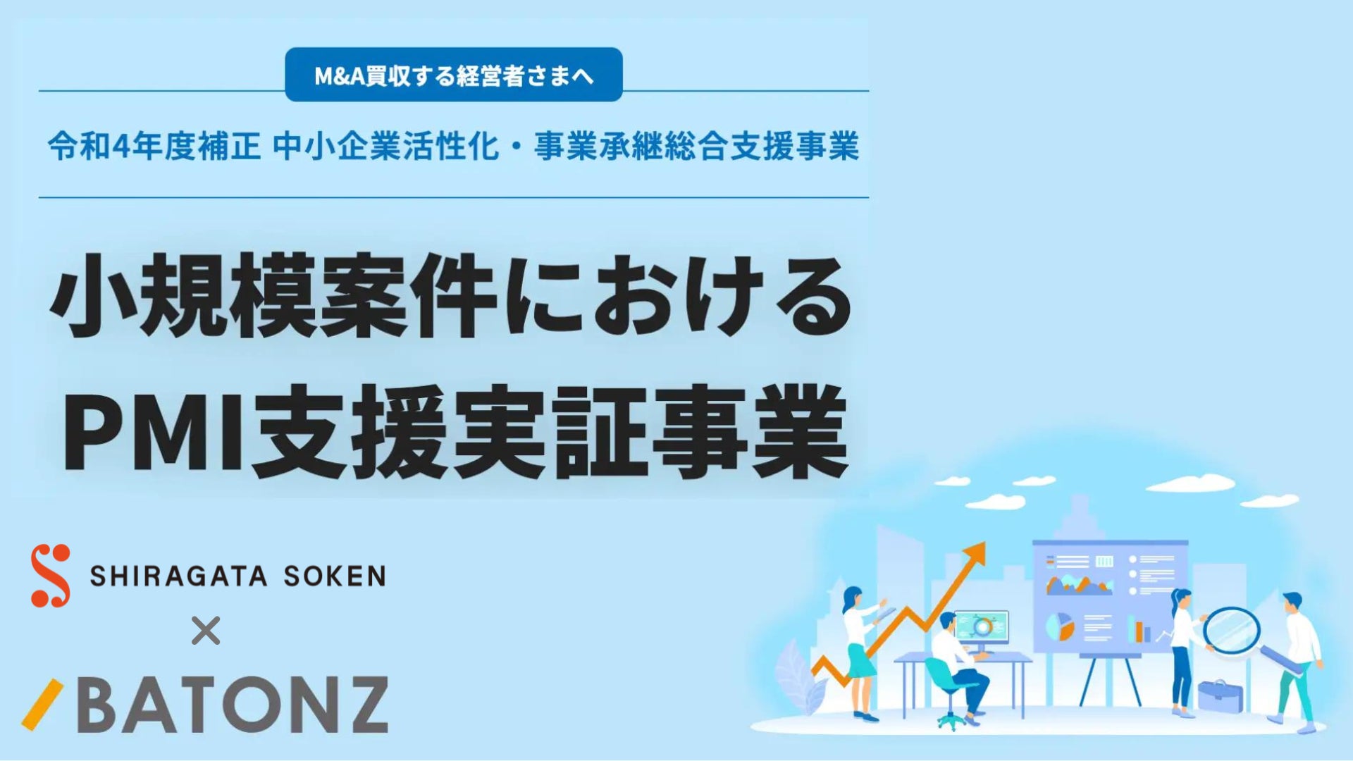 中小企業向けコンサルティングファームである白潟総合研究所がバトンズと協業し、中小企業庁が管轄するPMI支援実証事業を開始