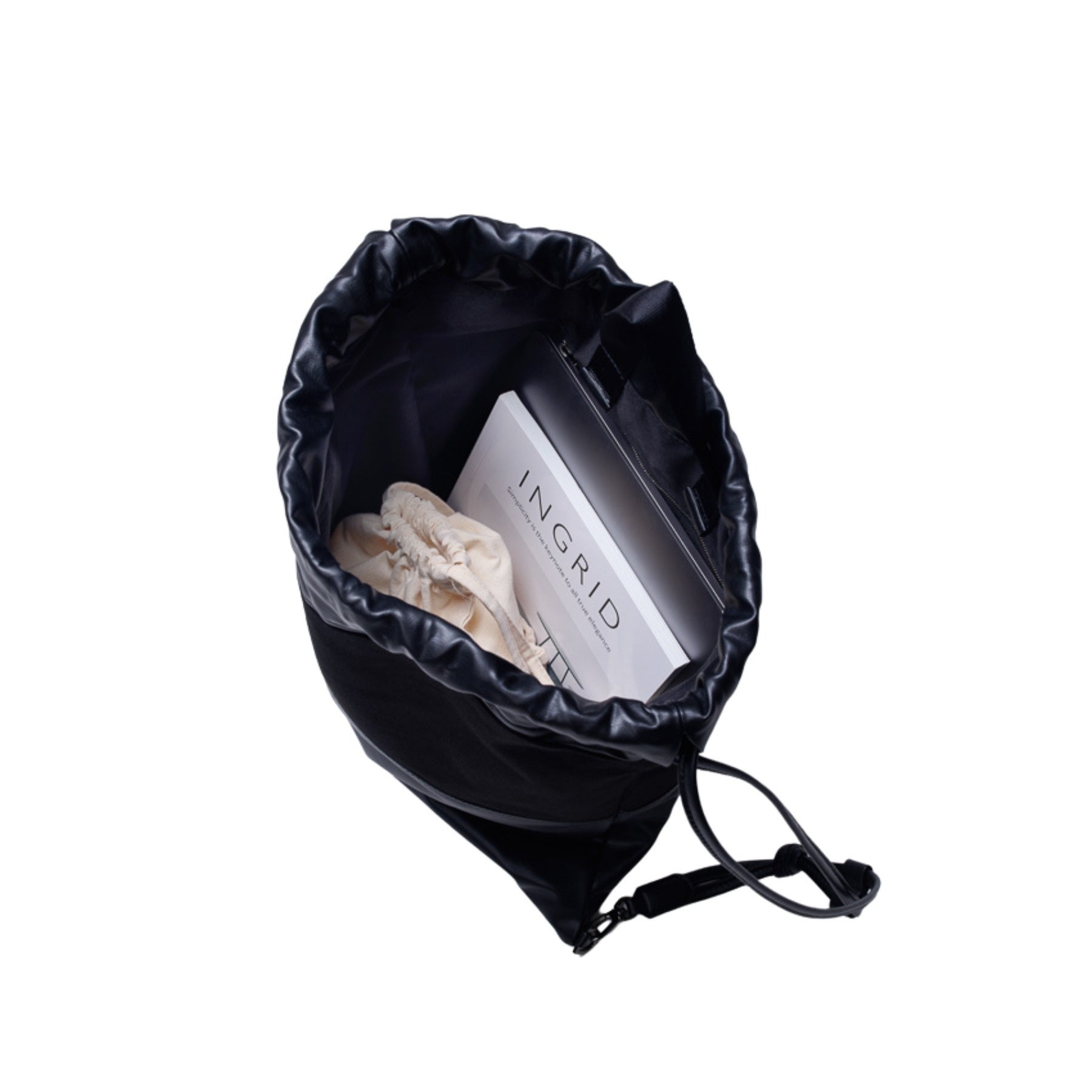 ナップサックとして背負うスタイルはもちろん、トップハンドルが付いているため手持ちもできる仕様。ハンドルを見せたくない場合には、内側に隠すことも可能です。