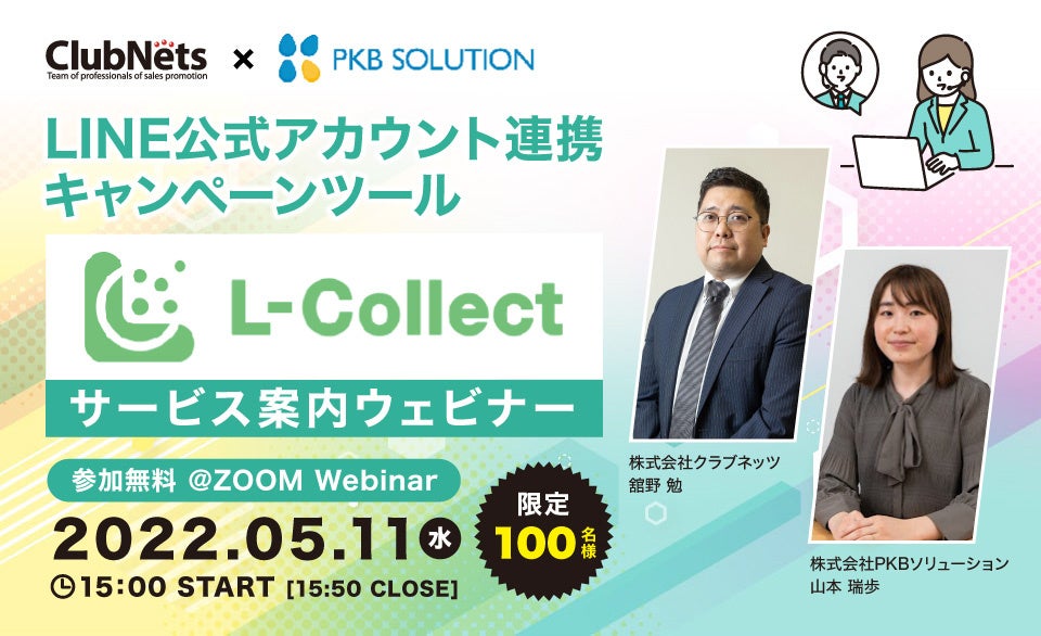 株式会社クラブネッツ(本社:東京都渋谷区、代表取締役社長:冨安仁)は、株式会社PKBソリューション(本社:滋賀県野洲市、代表取締役:山本浩史)と業務提携し、LINEを活用したキャンペーンサービス「L-Collect」の提供を2022年4月12日(火)より開始致します。