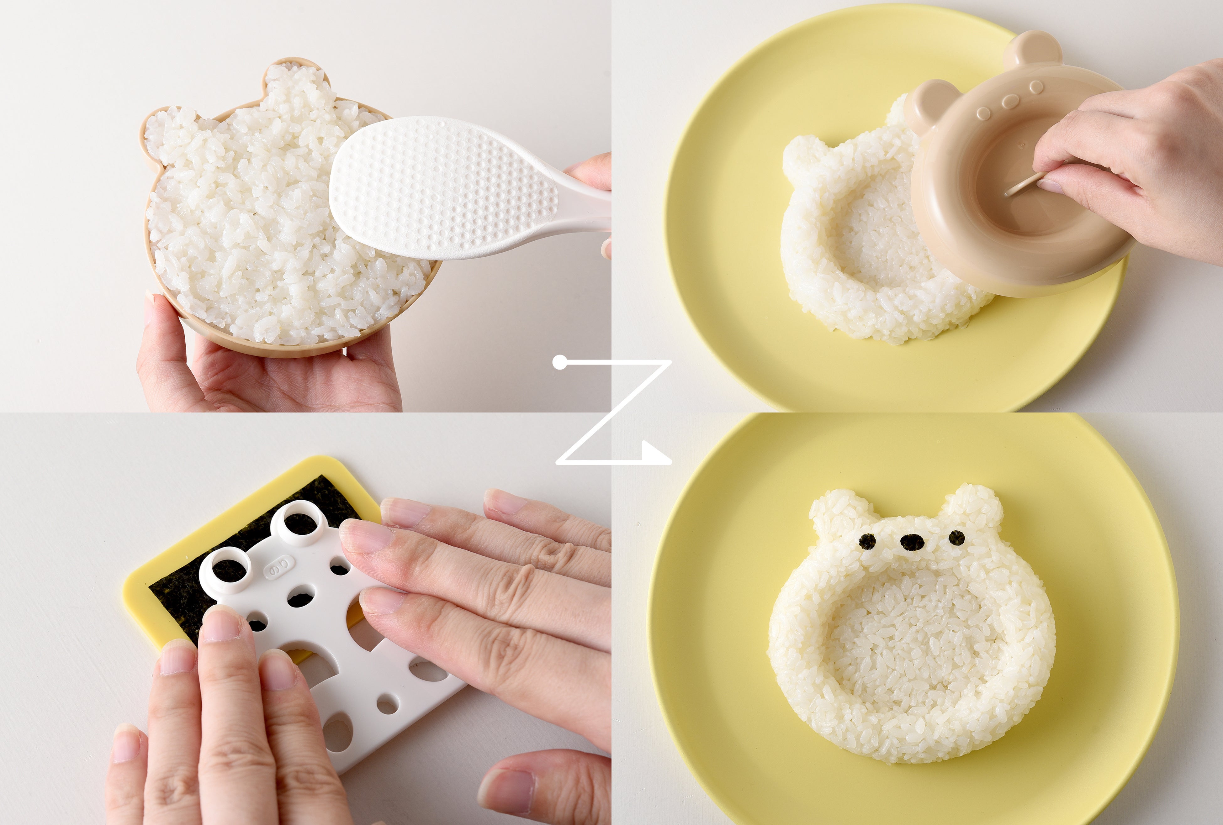 アーネストのデコ弁グッズブランド【nico kitchen(ニコキッチン)】から、お皿型のご飯が作れる「ぱくぱくポッケ くま」が発売します。おかずを乗せるとかわいいワンプレートごはんに!ごはん型と、海苔やチーズなどを型抜きできるカッターがセットになっており、誰でも簡単に作ることができます。当社のロングセラー商品「myフォルム あーん!ぱくっ!」(2018年発売)のミニサイズ版で、ご飯の量を100gに減らし、小さなお子さんでも食べやすいサイズにしました。