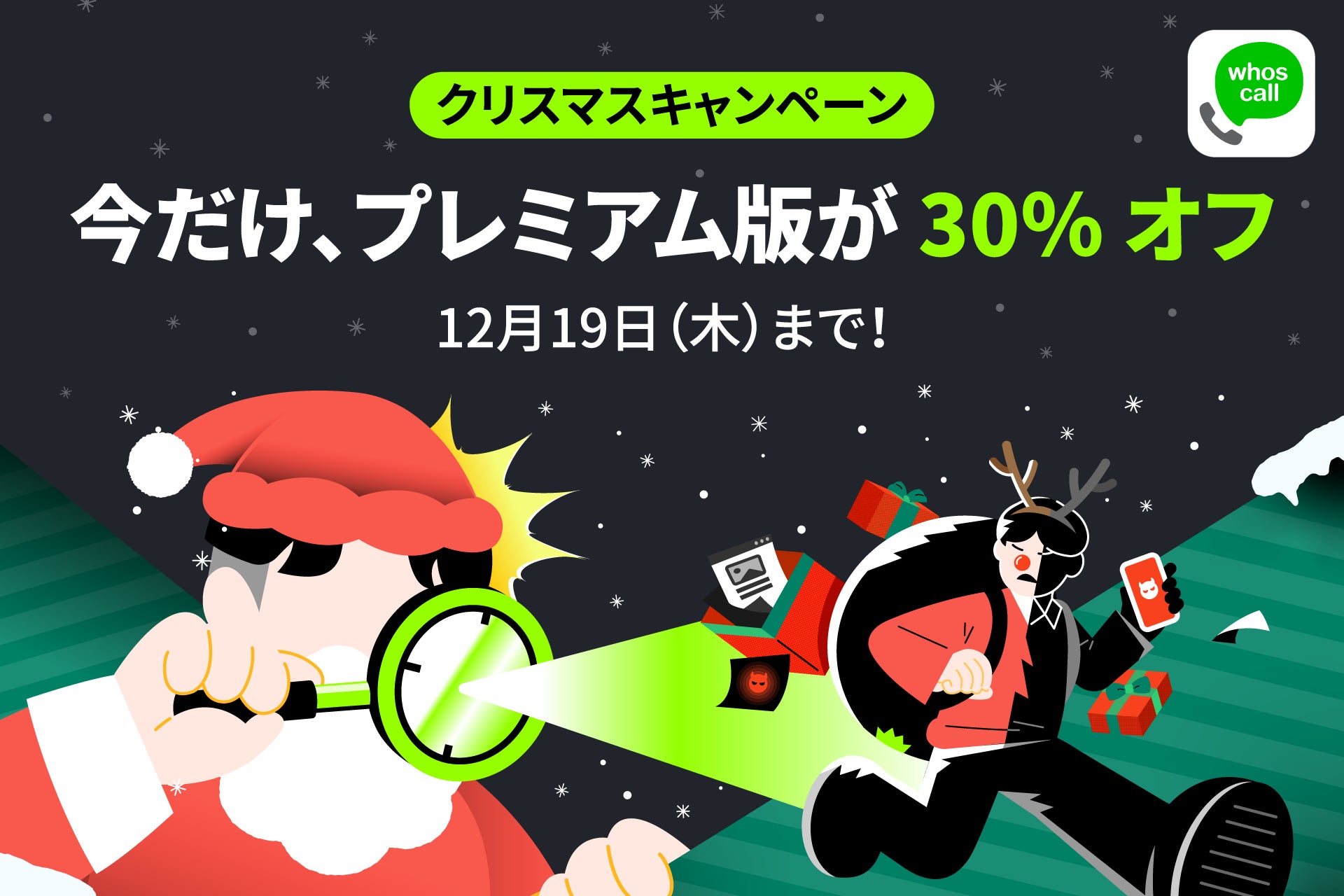 電話・ネット詐欺対策アプリを展開する「Whoscall(フーズコール)株式会社」(本社:福岡県福岡市、CEO:ジェフ・クオ)は、Whoscallプレミアム版の年間プランが30%オフになるクリスマスキャンペーンを本日11月26日(火)より実施いたします。