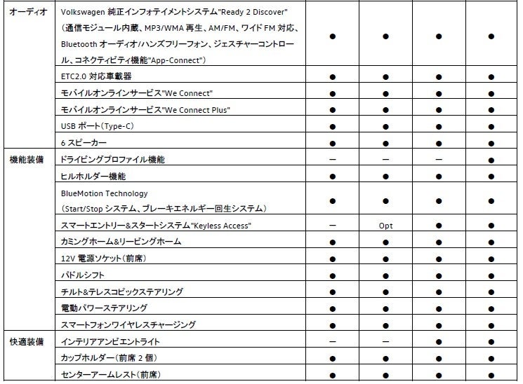 新型「Polo」についての主要装備表や諸元表は下記をご参照ください。