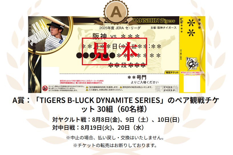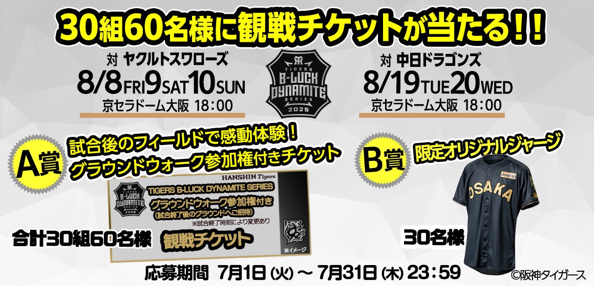 【TIGERS B-LUCK DYNAMITE SERIESペア観戦チケットプレゼント:30組60名様(本店限定)】