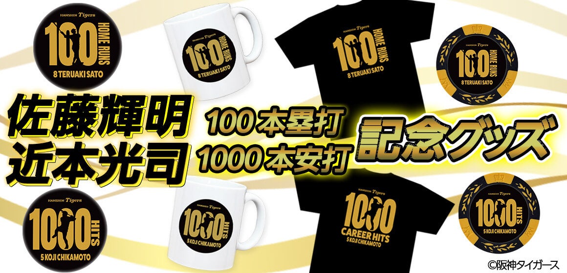 佐藤輝明選手100本塁打、近本光司選手1000本安打記念グッズももちろん対象です。