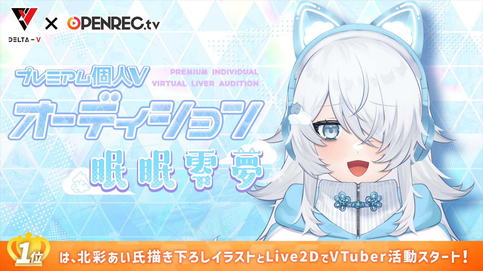 株式会社DELTA-Vの「プレミアム個人Vオーディション」が遂にOPENREC.tvにて開催!ランキング1位獲得者はキャラクターの立ち絵イラスト、三面図、Live2Dを取得し活動開始!男性Vライバー1名、女性Vライバー1名それぞれのランキングイベントを実施。