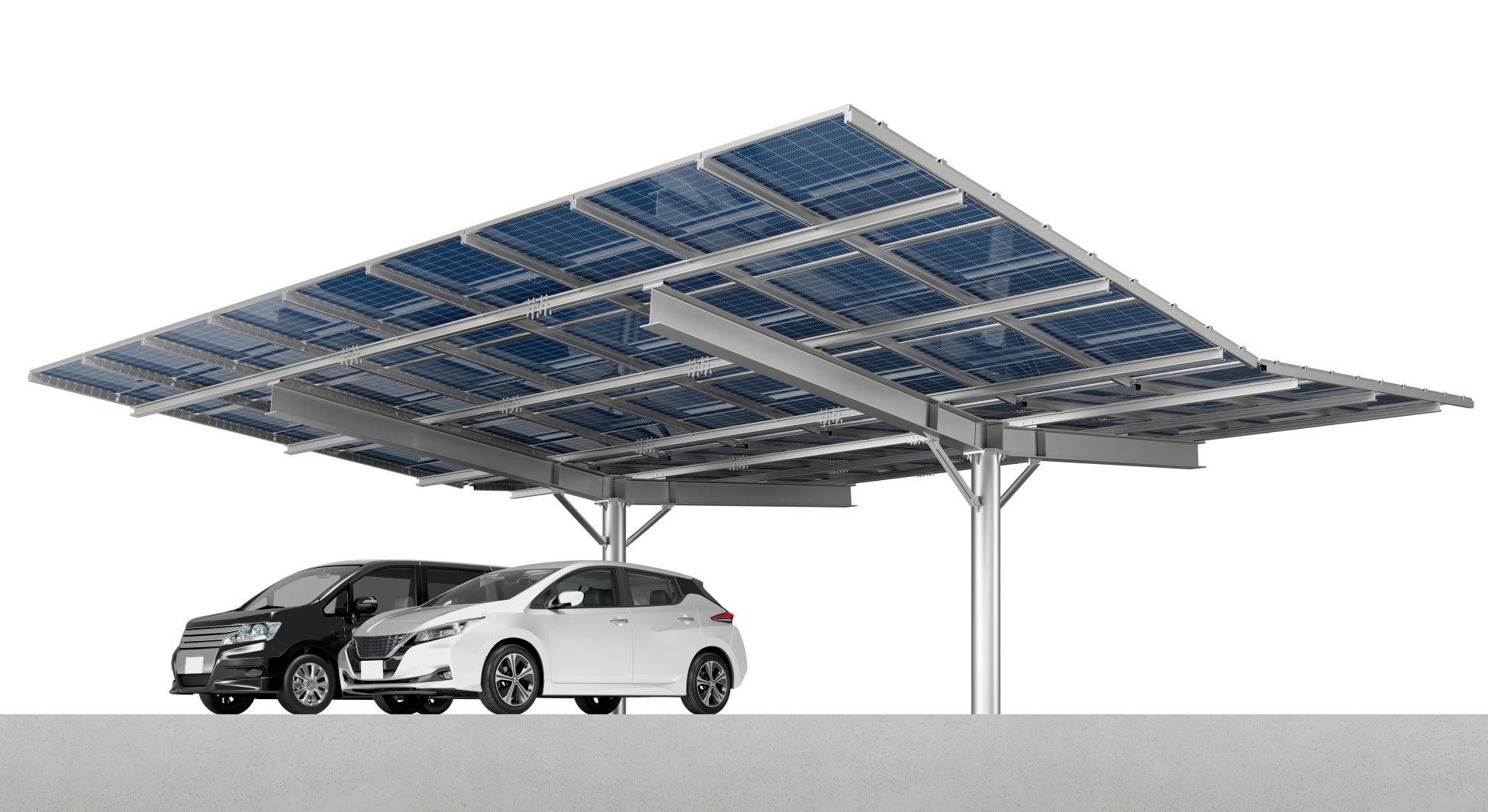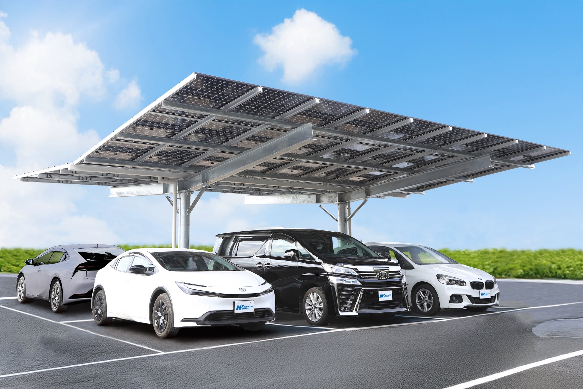 日栄インテック株式会社(本社:東京都荒川区、代表取締役:西川 嘉俊、以下 日栄インテック)は、東京理科大学発の構造設計ベンチャーである株式会社サイエンス構造 (本社:東京都葛飾区、会長:東京理科大学工学部建築学科 教授 高橋治、以下 サイエンス構造)と共同で、工場・大型商業施設・公共駐車場などへのPPA導入を想定した、後方支持(両翼タイプ)ソーラーカーポート「E-portY」を開発しました。