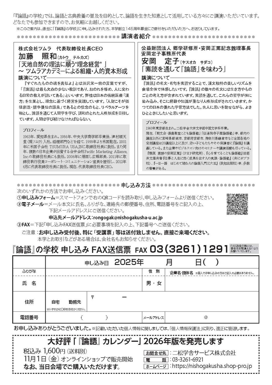 「2025年度『論語』の学校-RONGO ACADEMIA-」を開催いたします