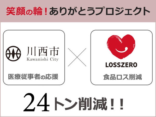 株式会社ロスゼロ(大阪市西区・代表 文美月)は、包括連携協定を結ぶ川西市と協力して進めた6カ月間の「ありがとうプロジェクト」を2022年3月31日に終えました。感謝の意を込めて医療従事者に届け、食品ロスを未然に防ぐことができた量は24トンを超えました。
