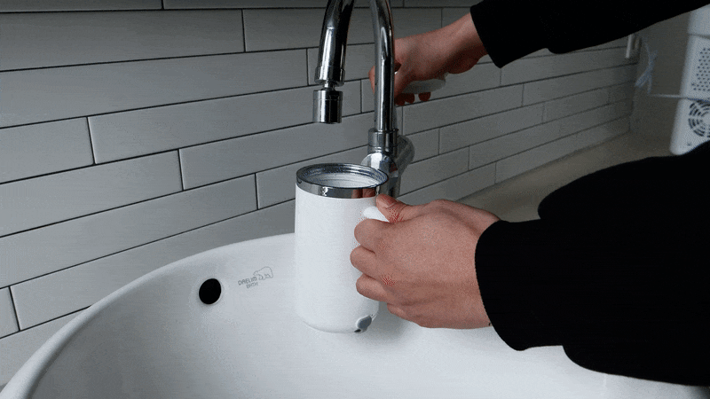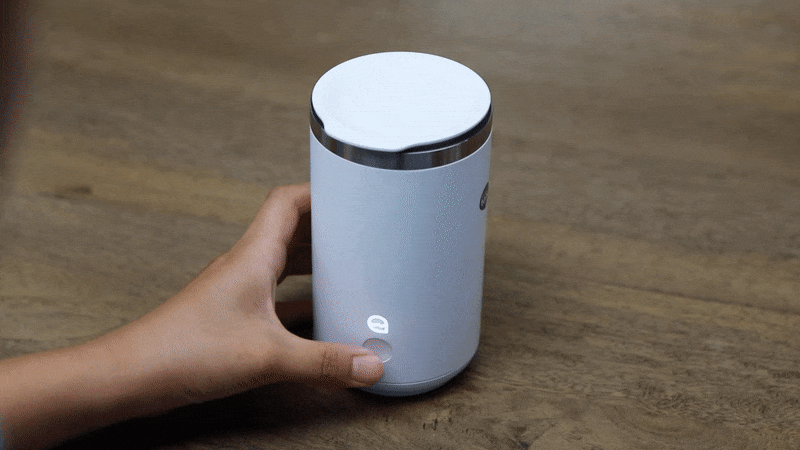 コップに水を入れて蓋をし、平らな場所に置いてボタンを押すだけ。