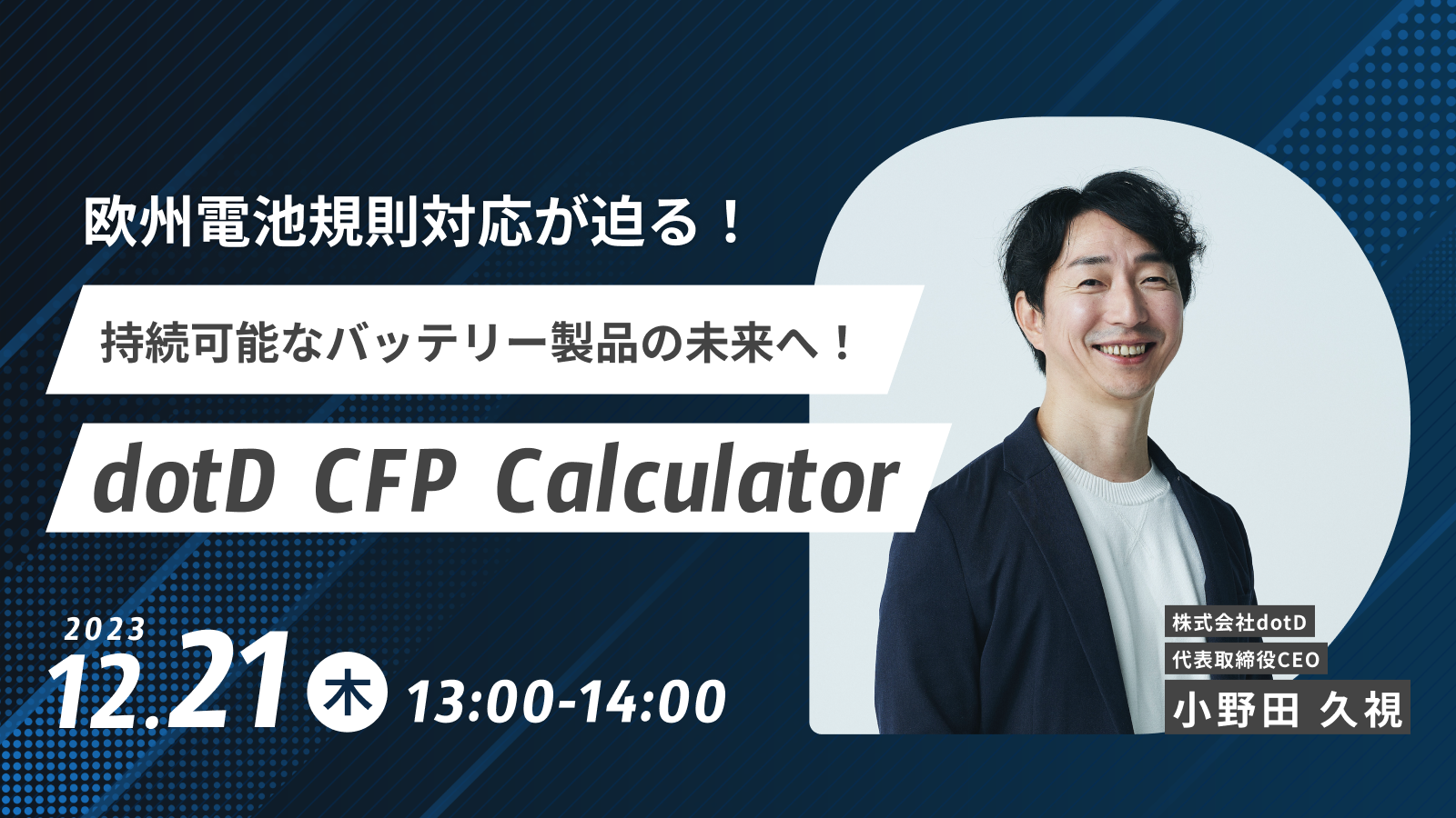 「持続可能なバッテリー製品の未来へ!欧州電池規則に準拠したCFP算出ツール “dotD CFP Calculator”」をテーマとしたウェビナーです。