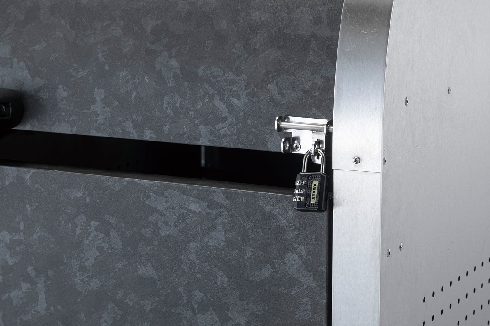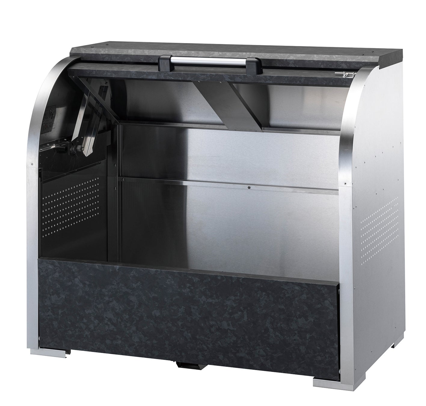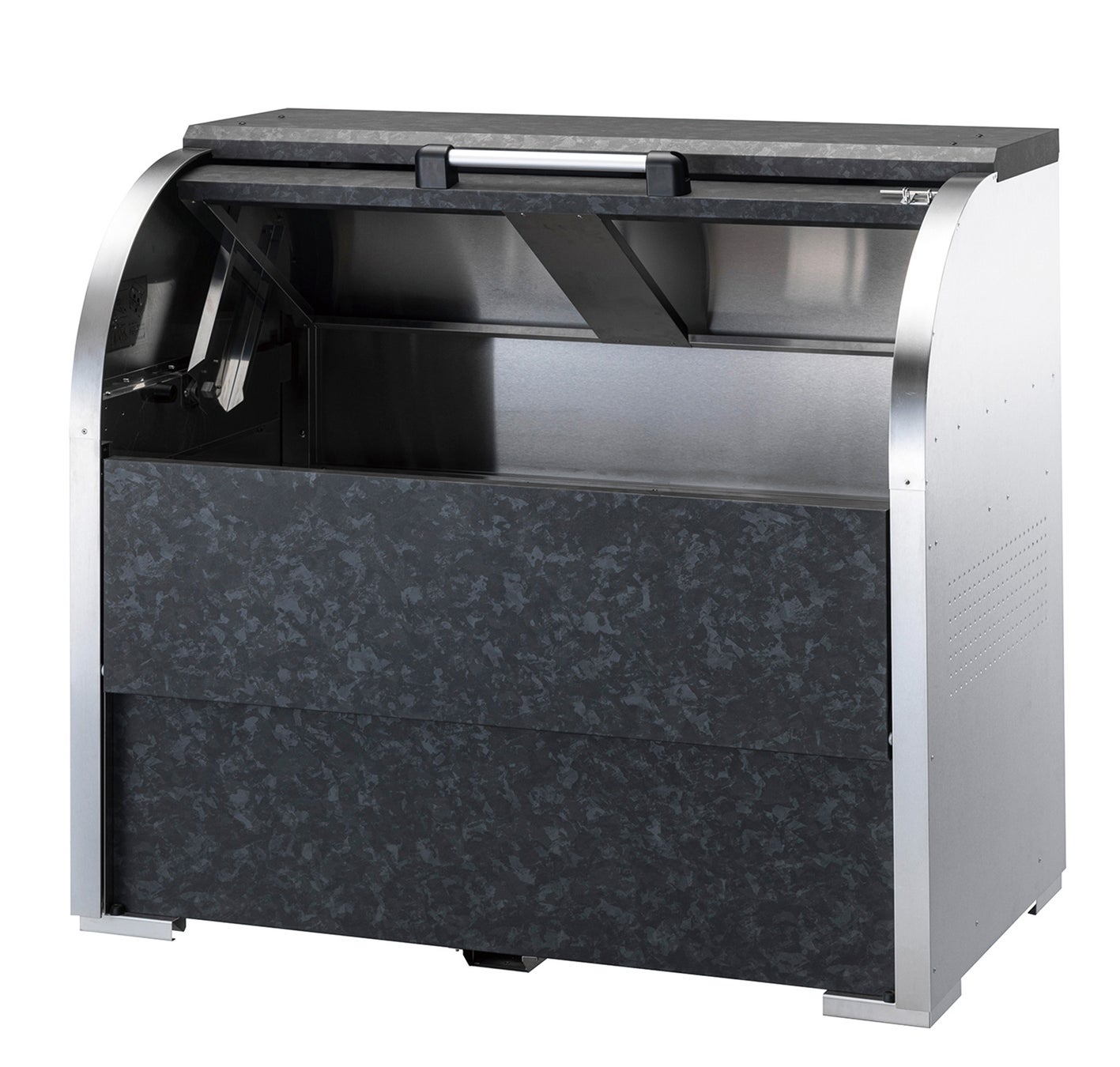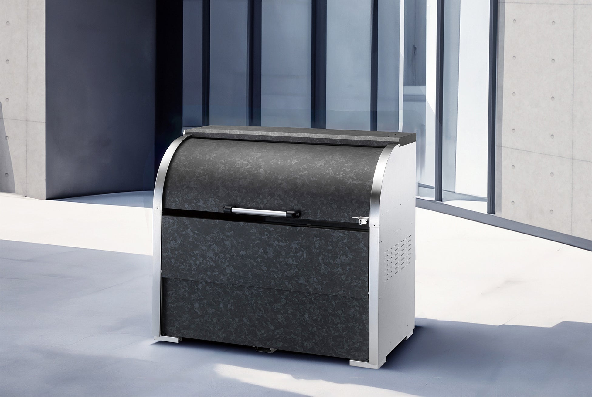 「ステンレス」と「リン酸処理柄シート」の組み合わせにより、”魅せる”ゴミ収集庫へ