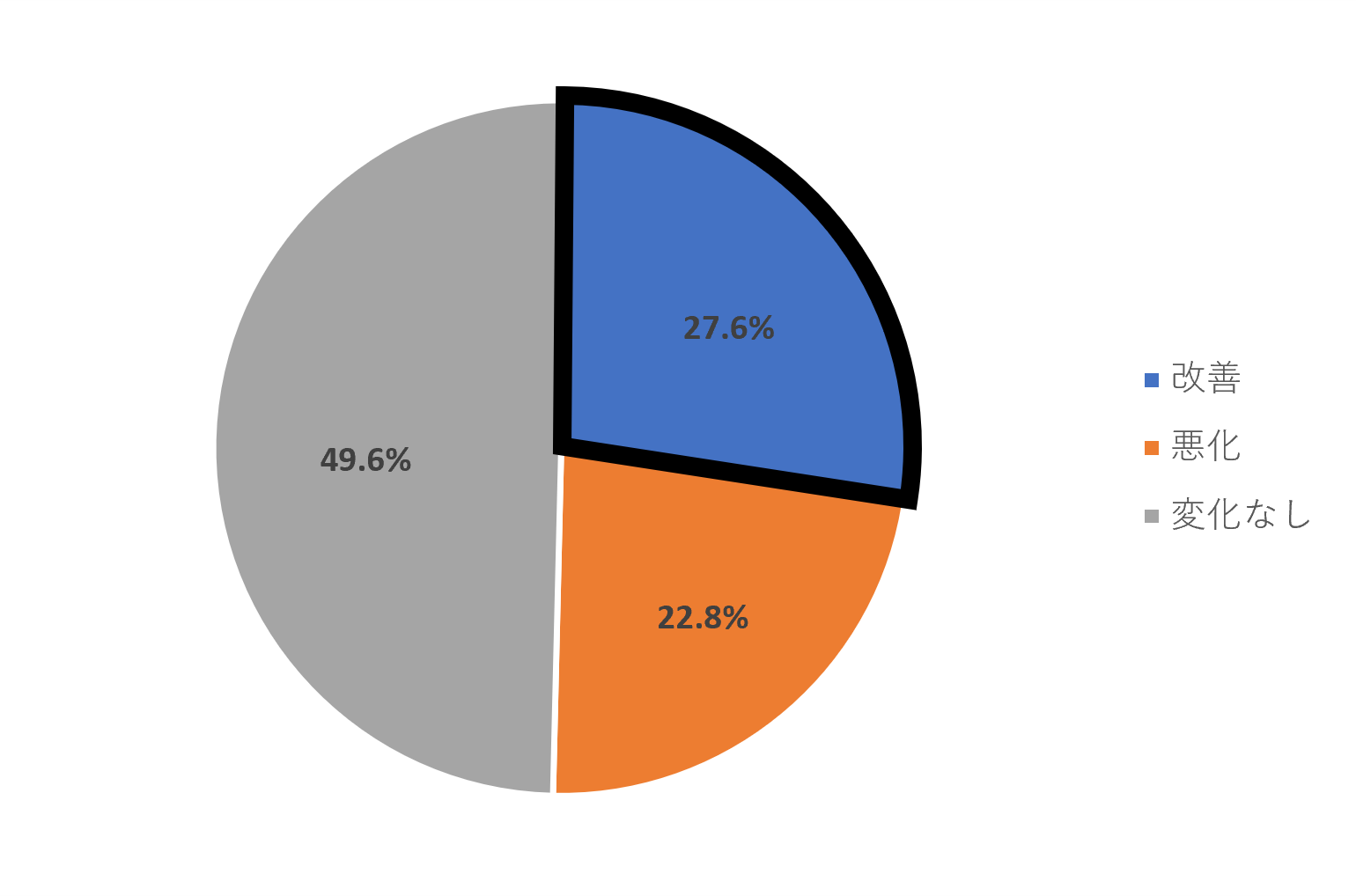 ◇一方、営業利益が「改善」したと回答した方は27.6%で昨年度下期から0.8ポイントの減少/約半数が「変化なし」回答という結果に