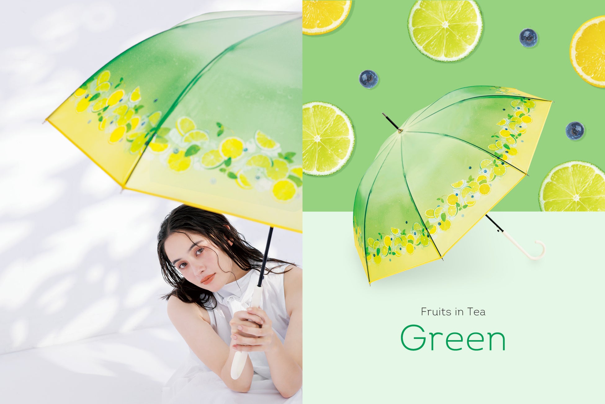 リフレッシュ効果のあるライムが描かれた傘をさすだけで、梅雨のじめじめした雰囲気もスッキリ軽くなり、気持ちよく晴れやかな気分になれそう。