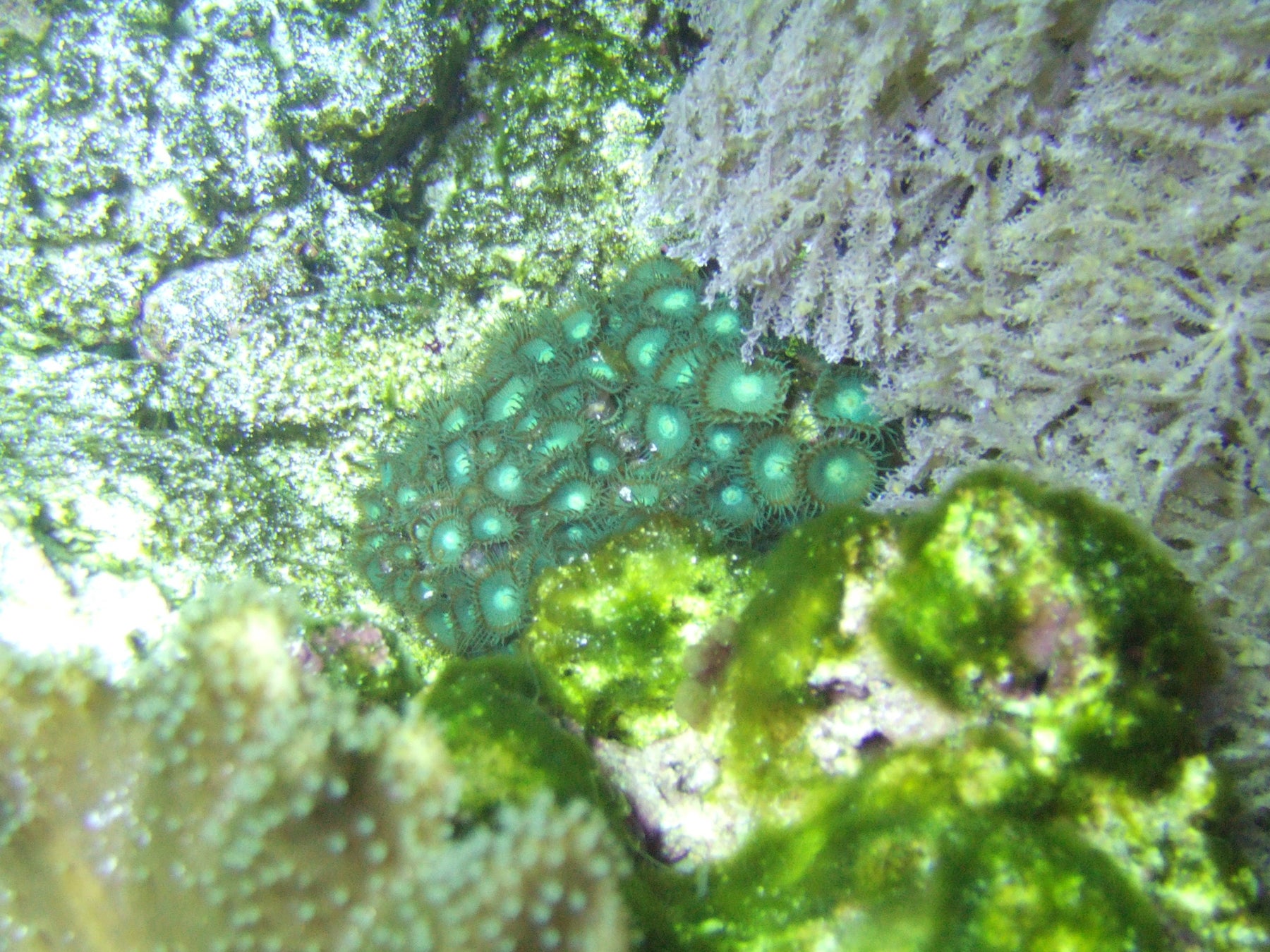 イソギンチャクに近い仲間で、体に砂粒を埋め込んで補強している。大きな群体を作ることでも知られており、カラーバリエーションも豊富なサンゴ。