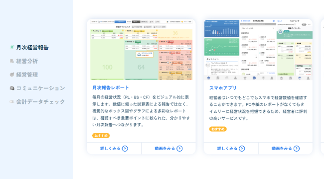 株式会社YKプランニングが企画・開発・販売・サポートする経営支援クラウドです。多種多様な会計ソフトのデータに対応し、会計データの自動チェック機能から月次の経営状況の把握・現状分析や経営計画の作成など多彩なコンテンツを提供しています。また、企業や会計事務所だけでなくコンサルタント、金融機関等とデータを共有する機能も備えており、無料でご利用を開始していただけるようになっています。インターネットブラウザやスマホ・タブレットなどマルチデバイス対応をしています。