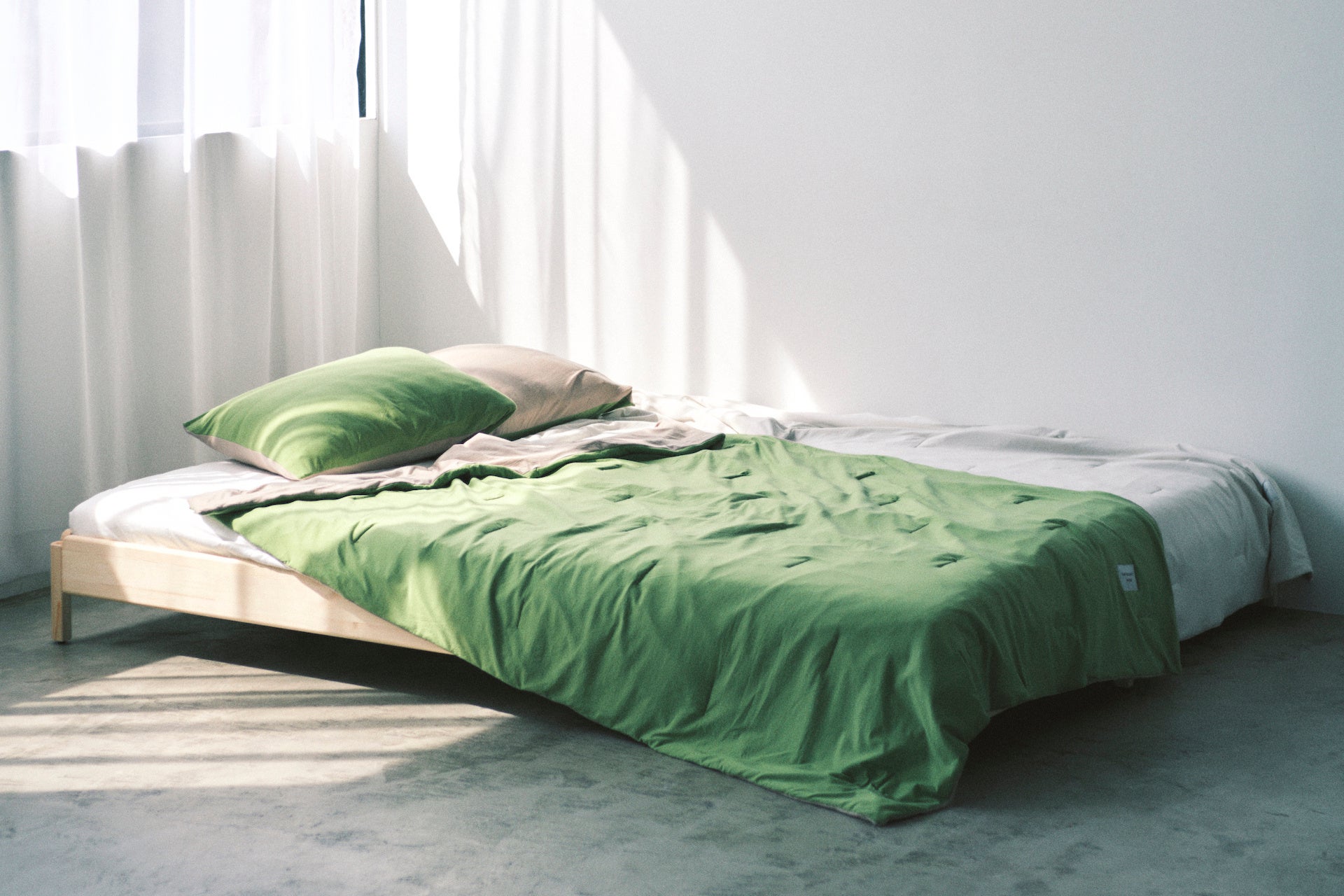 「カポックの布団がほしい」というお客様のご要望にお応えして作ったアイテム。KAPOK KNOTのアウターと同じEthical Down KapokⓇを使用し、春夏には1枚掛け、秋冬には掛け布団と重ねて毛布代わりになる、オールシーズン活躍する布団です。とろけるような肌触りのテンセルを表地と裏地に使用し、肌馴染みを追求。表裏の色を変えてリバーシブルにすることで、ファッション感覚で部屋をコーディネートできるカラーリングです。