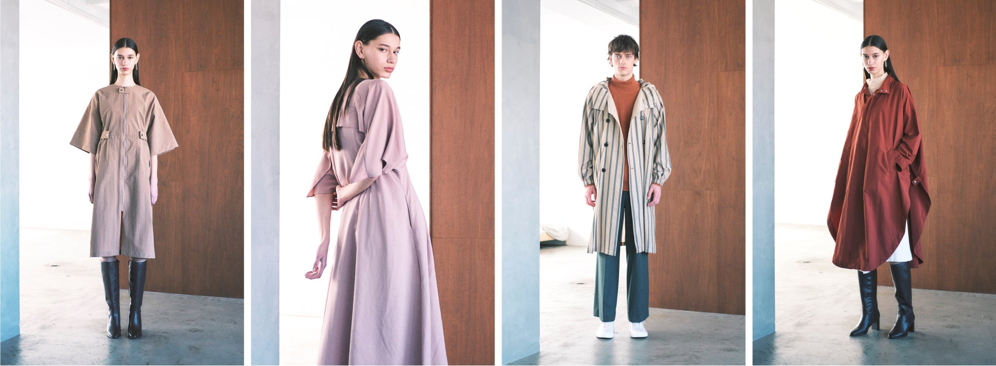 SSコレクションは、ワンピースとアウターのデザインをBlurすることで「着回しが効かない」ワンピースに新しい可能性をつくろうとデザインしました。ワンピースとして着れば、特別な日のための晴れ着に。アウターとして着れば、日常のコーディネートにアクセントを加える一着に。春から夏にかけて、さまざまなシーンで活躍する特別な一枚になればと思います。