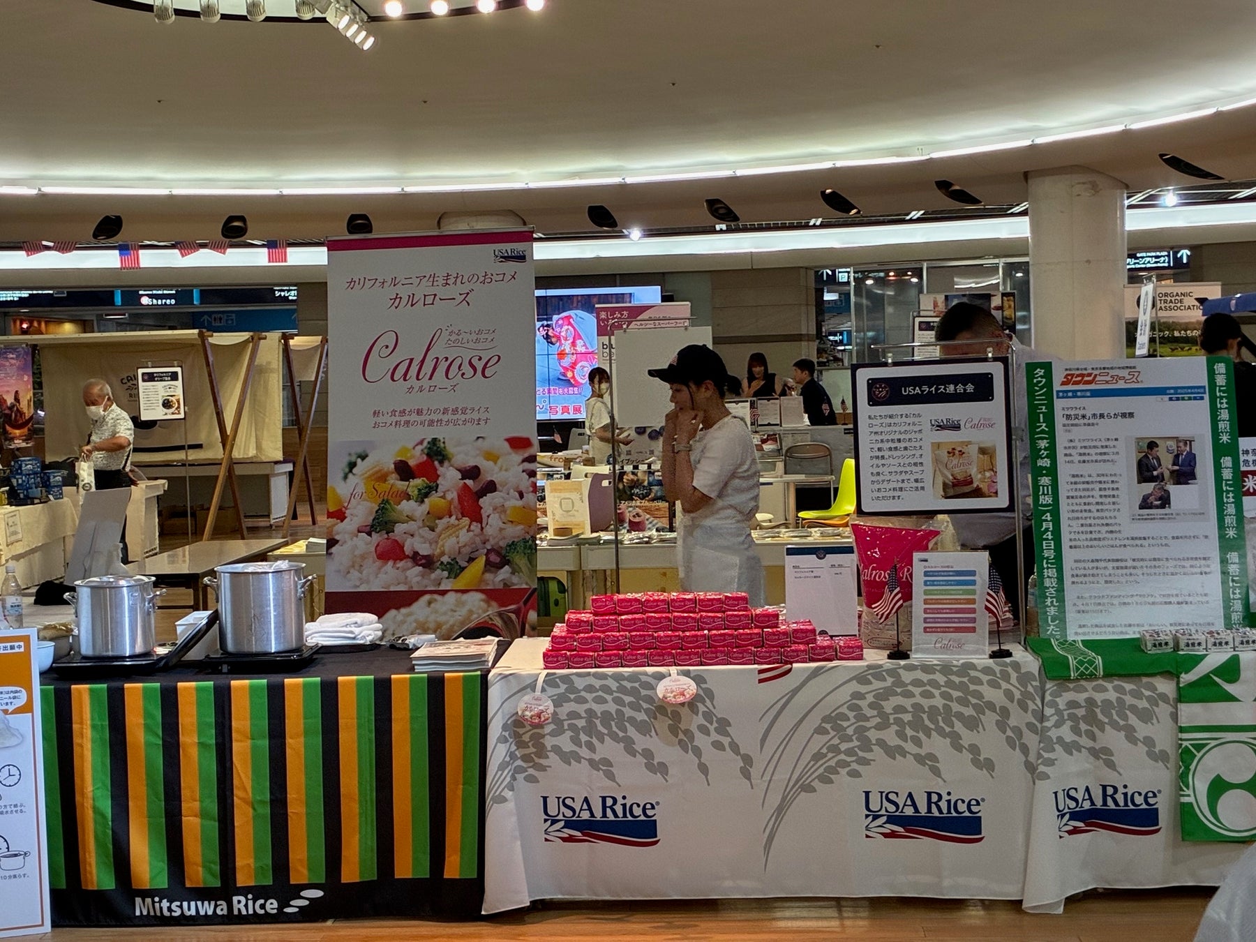 USAライス連合会は、アメリカ農産物貿易事務所(ATO)大阪主催の「アメリカンフードフェア」にブースを出展し、カルローズ米の魅力を広く紹介しました。イベント期間中、会場には約7,200人が来場し、アメリカの多彩な食文化や食材との出会いを楽しみました。当連合会ブースにも、「カルローズは聞いたことはあるが、食べたことはない」という方を中心に多くの来場者が訪れ、300名以上の方々に試食していただきました。試食された方々からは、「軽い食感でおいしい」「普段食べているお米とあまり違和感がない」など、前向きなご意見を多数いただき、試食体験を通してカルローズを知っていただく機会になりました。