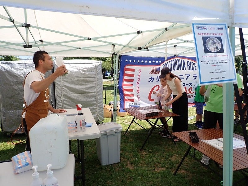 また、同スペースでは株式会社ミツワライス(本社:神奈川県)が独自開発した、カルローズを使用した「湯煎米」(1合/150g)の実演販売を行ったところ、防災用やアウトドアクッキングにも使いやすい点に対して高い関心が寄せられました。