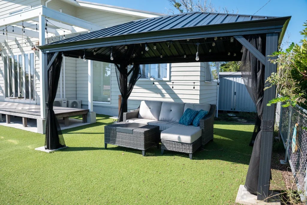 広々とした庭には、ソファーとブランコをご用意。広い庭で海を眺めながらゆったりとした時間を過ごしていただけます。