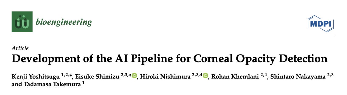 OUI Inc.の吉次研二・清水映輔らの研究グループにより、Smart Eye Cameraで撮影した前眼部画像より「角膜混濁を検出」するAIアルゴリズムの開発に成功いたしました。本研究成果は、科学雑誌「Bioengineering」に2024年3月13日(日本時間)に公開されました。