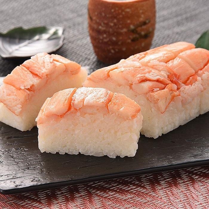 紅ズワイガニの棒肉を贅沢に乗せ、甘くフルーティーなカニ酢とさっぱりした酢飯が味のポイントに。分厚いカニのプリッとした食感と石川県産のお米を使った酢飯のねっちり食感が見事に交わり、虜にしてくれる。カニの旨味と食感を楽しんだ後に酢飯がさっぱりと綺麗に後味を抑えてくれるので、ついつい手が伸びてしまう旨さ。家族や親友、みんなで分けながら晩酌のつまみにしても◎。