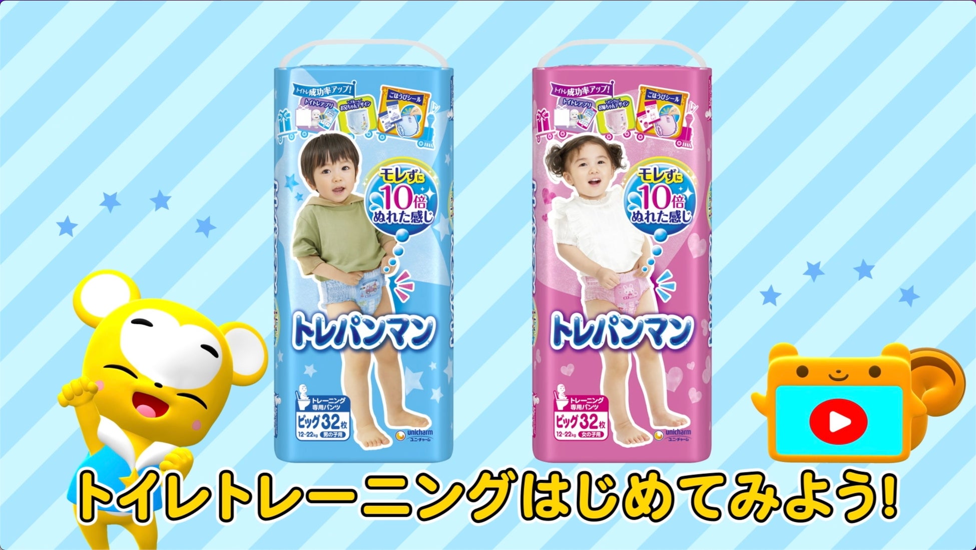 トイレトレーニングは、トレーニングを終えるまでにかかる期間が平均5ヶ月と長く、子育て中のママやパパ、そしてお子様にとっても根気のいるイベントです。トイレトレーニング開始時の悩みに対し、お子様のやる気を促す様々な仕掛けをしているトレパンマンを通してトイレトレーニングにチャレンジしてみてください。