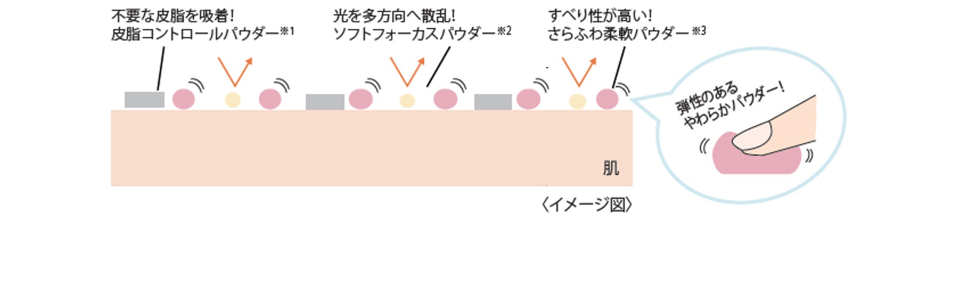 ・ソフトフォーカスパウダー※2が光を多方向に散乱させ、肌の凹凸をふんわりとぼかし、