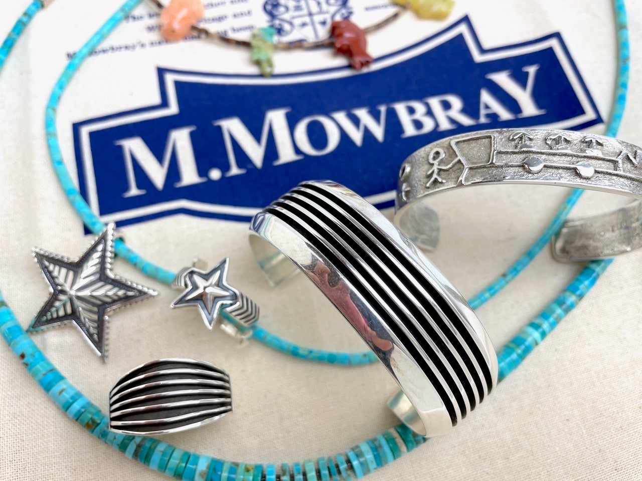 ナバホ出身アーティストが作るジュエリーは、就労人口が他部族よりも比較的多い事などから、生産数も他より多く、またデザインや製作方法もとても多彩です。