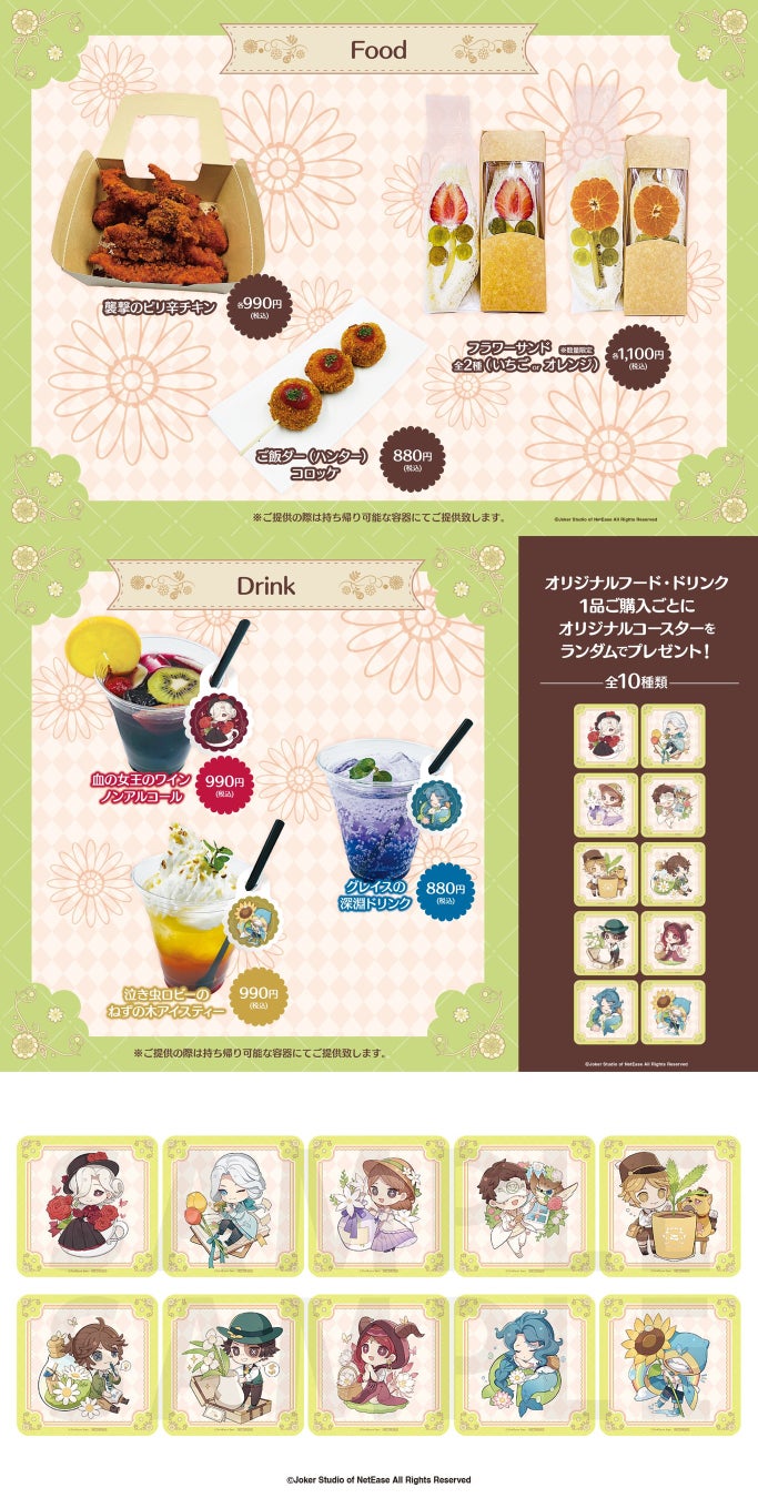 オリジナルフード・ドリンクを1品ご注文ごとに「コースター(全10種)」をランダムで1枚プレゼント。