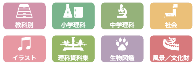 「デジタル素材集」には“小学校理科”や“生物図鑑”など、授業で活用できる画像を全8カテゴリー、約3万点収録しております。今回は、スタンダード会員(無料登録会員)向けにプレミアム会員(有料登録会員)向け機能の体験版を期間限定でご提供します。