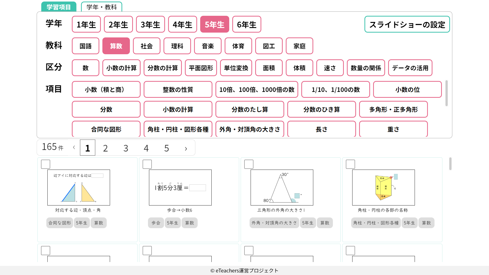 「eTeachers GIGA SCHOOL」は、主に小学校の各学年、各教科の基礎的な知識・技能の習得に役立つ「フラッシュ型教材」や授業で使えるテンプレート集など「GIGA端末の活用」に繋がる教材やツールを先生方にお届けするサイトです。