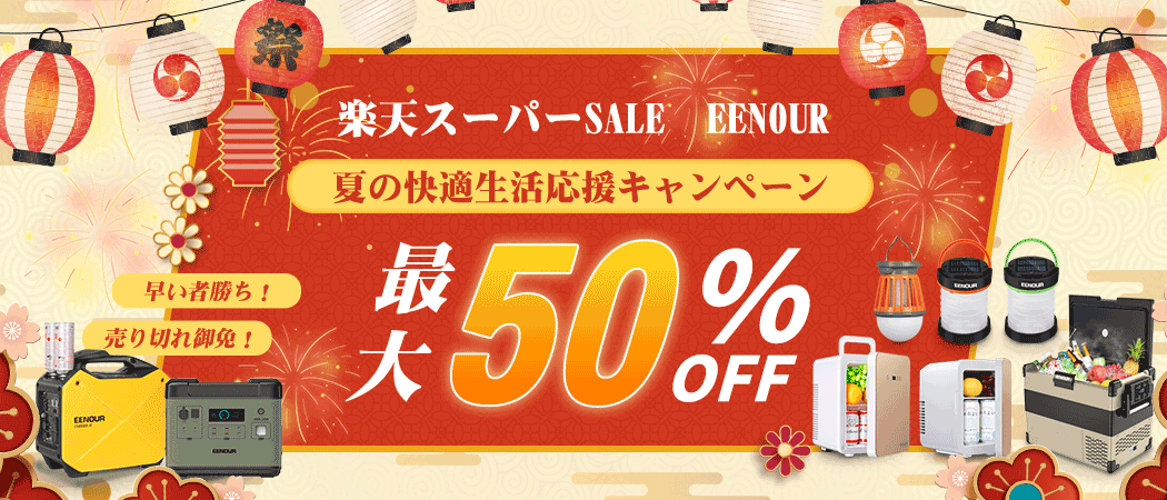 【EENOUR】車載対応冷蔵庫、インバーター発電機、ポータブル電源など期間限定最大50%OFF!まもなく"楽天スーパーSALE" 開催!