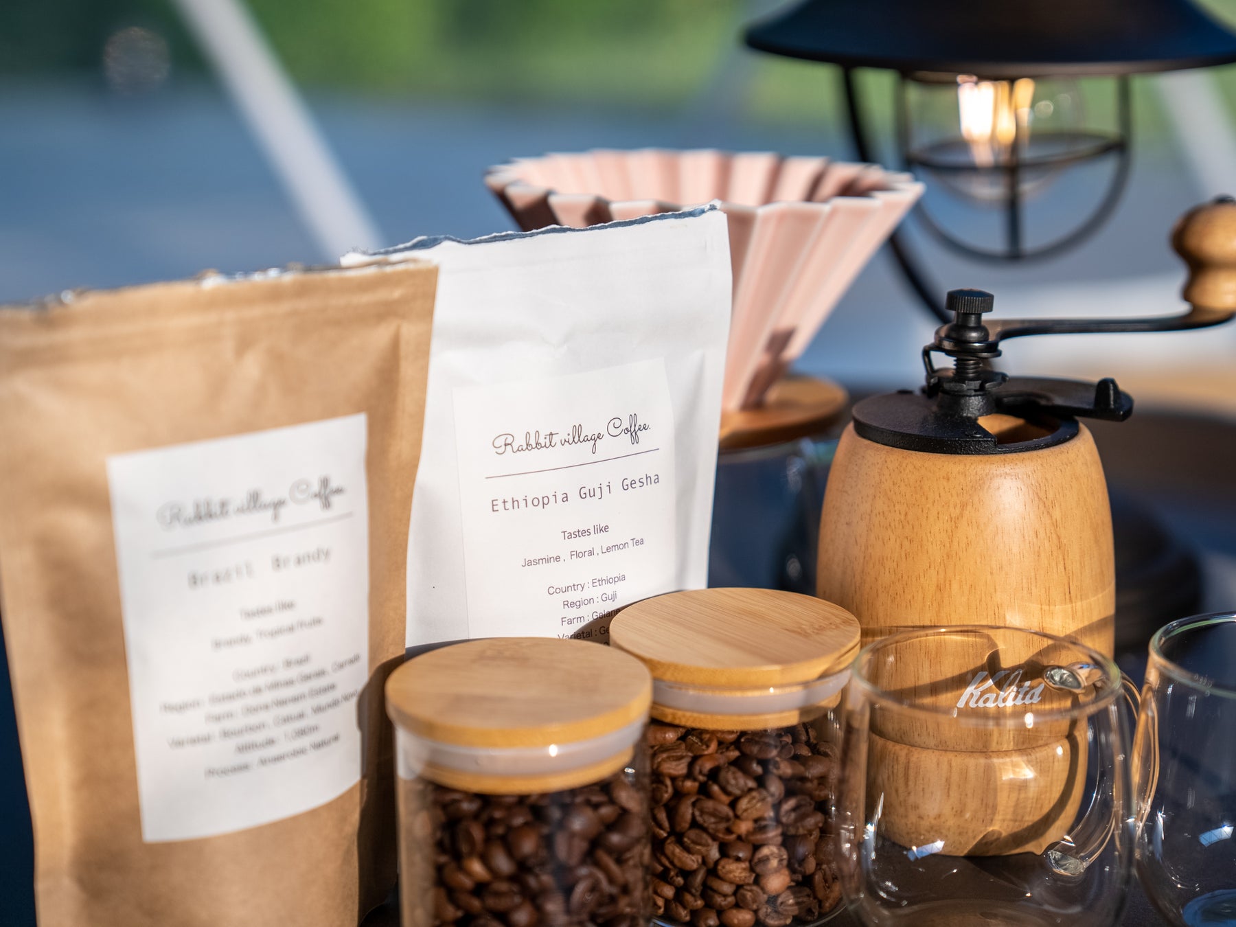 村山市Rabbit village Coffeeさんのコーヒー豆・コーヒーミル・マグ・ドリッパーのセット