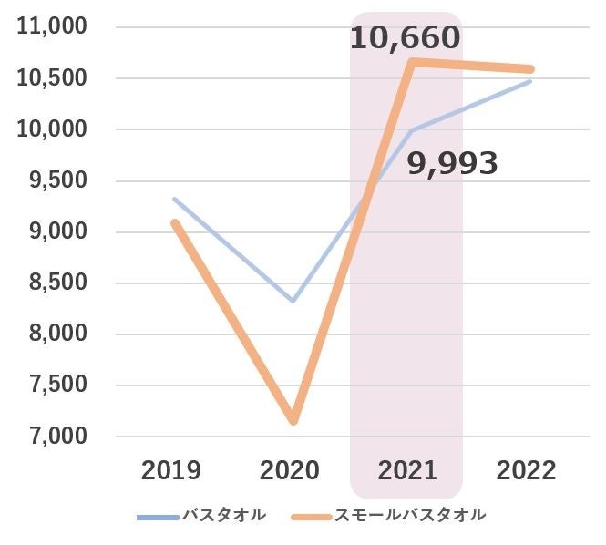 1.2021年以降、バスタオルよりスモールバスタオルの方が売れている