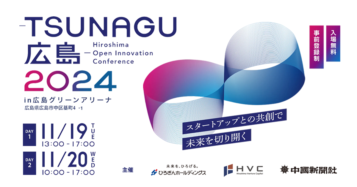 「TSUNAGU広島2024」は、株式会社ひろぎんホールディングス、株式会社広島ベンチャーキャピタルおよび株式会社中国新聞社が共催する、広島県内を中心とした事業者と国内の有望なスタートアップ126社をつなぎ、オープンイノベーション(事業共創)を促進させるマッチングイベントです。