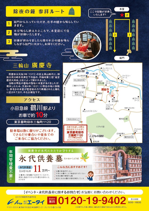 一年に一度、綺麗な鐘の音が鳴り響く廣慶寺にぜひお越しください。どなたでも当日参加可能で、無料でお楽しみいただけます。